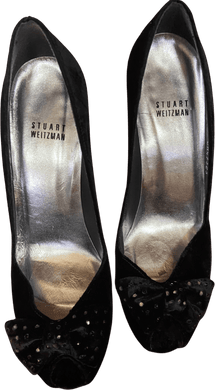 90’s Satin/Velvet pumps w/ embellished bow by Stuart Weitzman