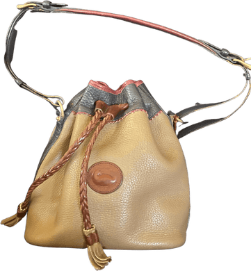 90's Classic Taupe Braided Drawstring Bucket Bag by Dooney & Burke